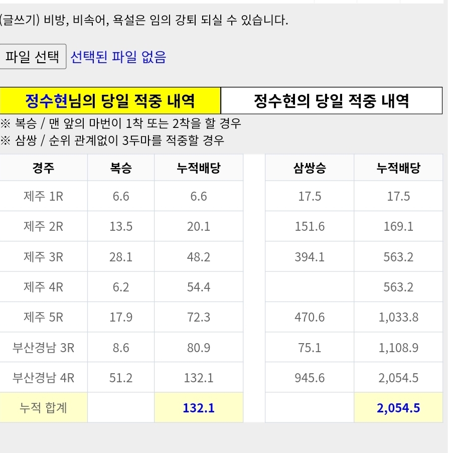 | 축마는 본인 수정이 가능합니다. 나머지 빈 칸에 마번을 채우시고 삼쌍 조합기를 사용하세요~ |