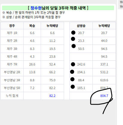 | 정수현 | 남은 2경주 |