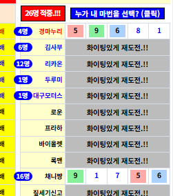 축마는 본인 수정이 가능합니다. 나머지 빈 칸에 마번을 채우시고 삼쌍 조합기를 사용하세요~ |