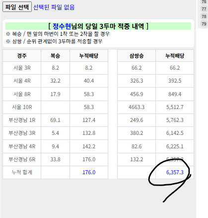 | 축마는 본인 수정이 가능합니다. 나머지 빈 칸에 마번을 채우시고 삼쌍 조합기를 사용하세요~ |