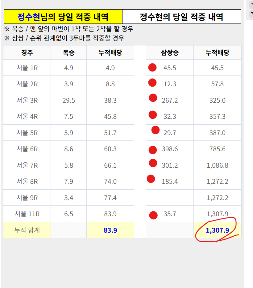 | 축마는 본인 수정이 가능합니다. 나머지 빈 칸에 마번을 채우시고 삼쌍 조합기를 사용하세요~ |