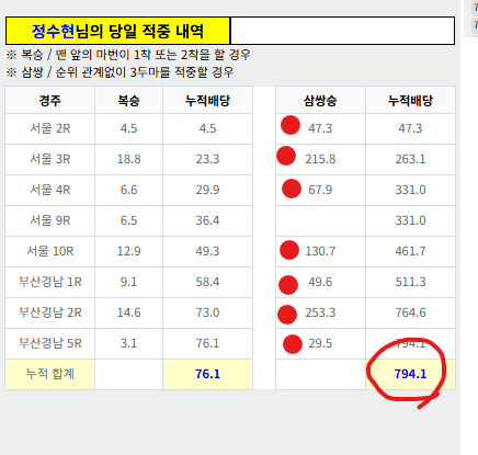 | 축마는 본인 수정이 가능합니다. 나머지 빈 칸에 마번을 채우시고 삼쌍 조합기를 사용하세요~ |