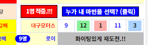| 축마는 본인 수정이 가능합니다. 나머지 빈 칸에 마번을 채우시고 삼쌍 조합기를 사용하세요~ |