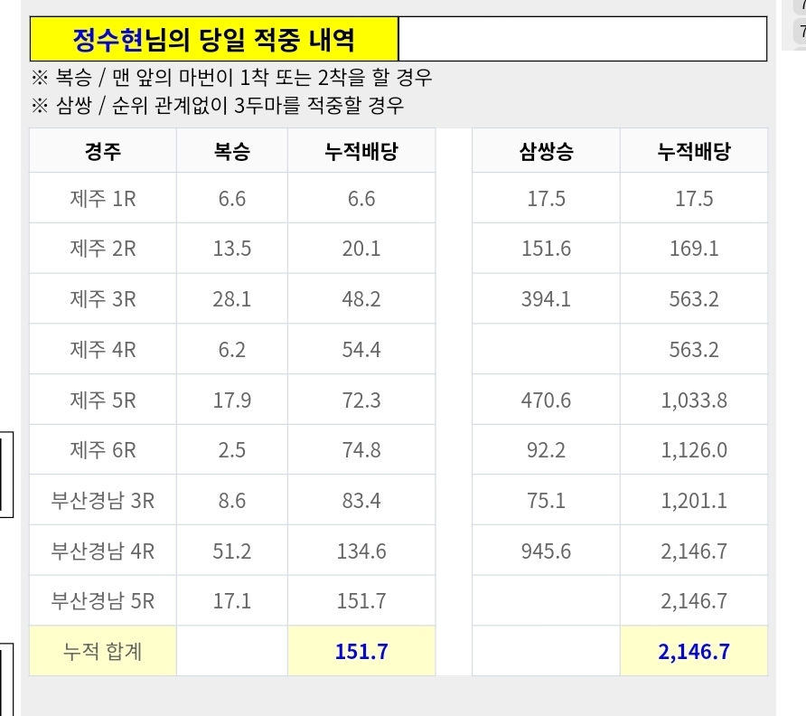 | 축마는 본인 수정이 가능합니다. 나머지 빈 칸에 마번을 채우시고 삼쌍 조합기를 사용하세요~ |