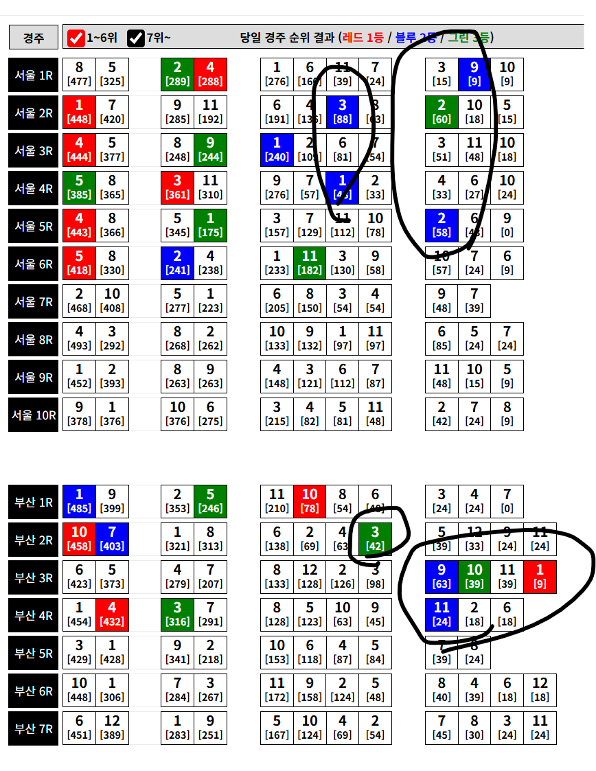 | 축마는 본인 수정이 가능합니다. 나머지 빈 칸에 마번을 채우시고 삼쌍 조합기를 사용하세요~ |