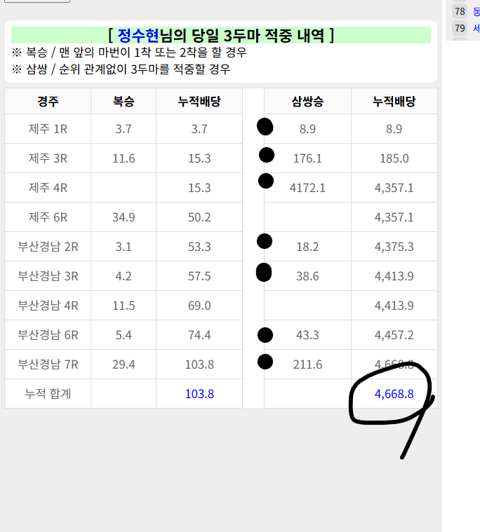 | 정수현 | 내일도 잘 분석해서 좋은 마번으로 승부 하겠습니다. |