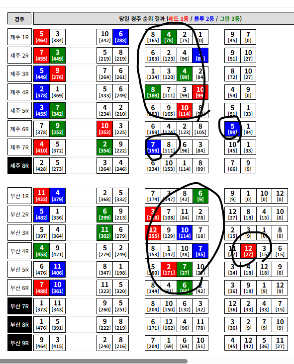 | 축마는 본인 수정이 가능합니다. 나머지 빈 칸에 마번을 채우시고 삼쌍 조합기를 사용하세요~ |