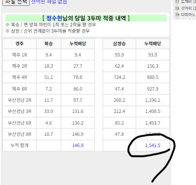 | 정수현 | 중반경주에서 이상한 마번들이 들어오면서 |