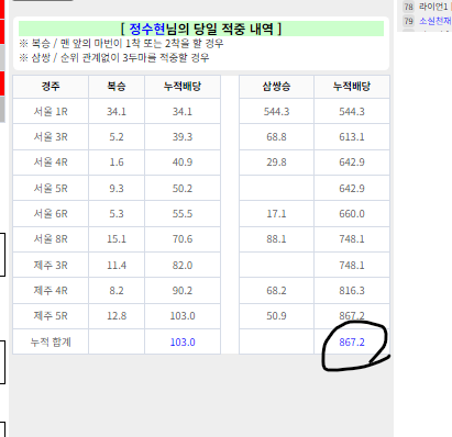 | 정수현 | 3착이내에 들어오면 됩니다 |