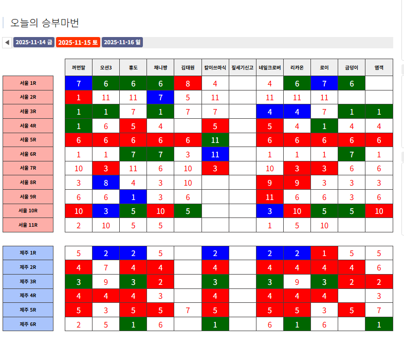 | 정수현 | 오늘의 승부 마번 결과입니다 |