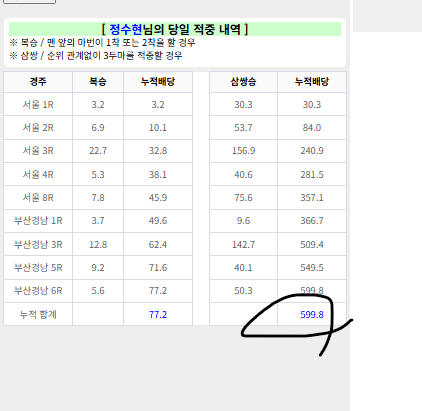 | 정수현 | 마번 위치 수정되엇습니다 |