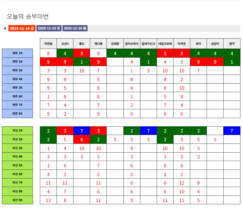 | 축마는 본인 수정이 가능합니다. 나머지 빈 칸에 마번을 채우시고 삼쌍 조합기를 사용하세요~ |